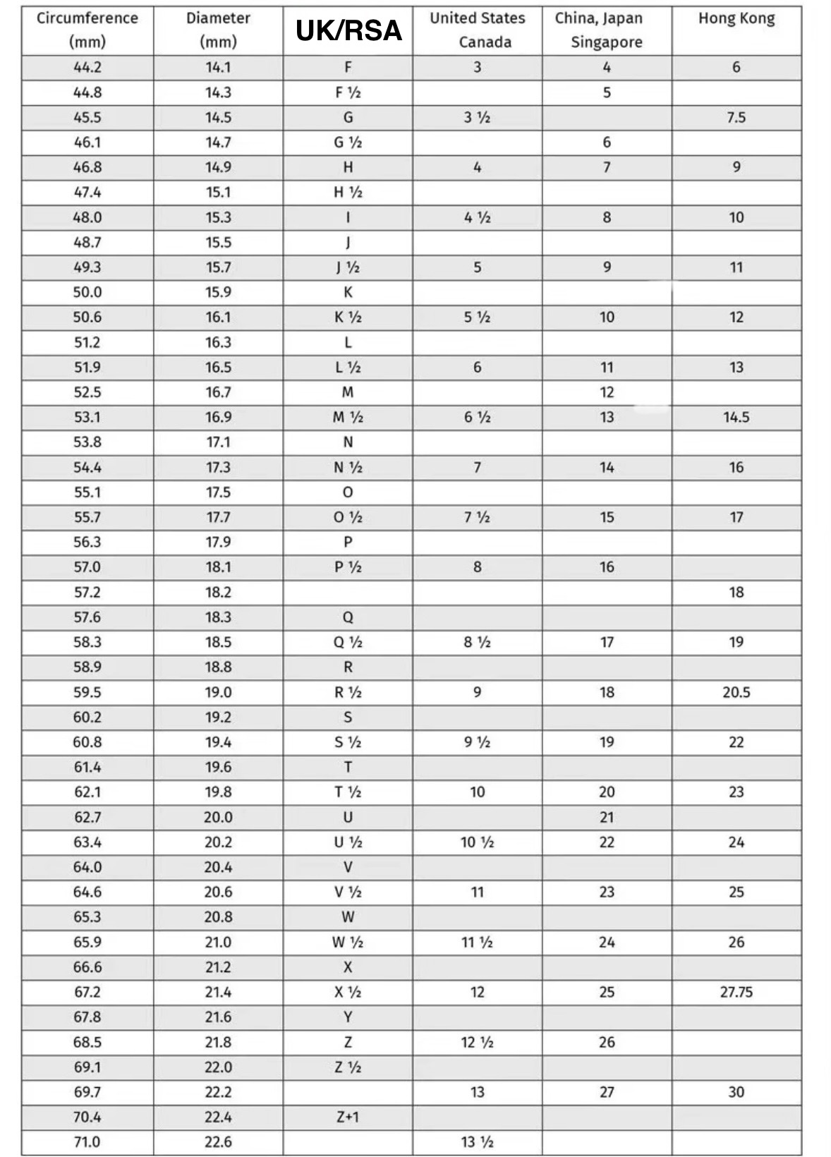 We use UK letter sizing here in South Africa, so if you're using another system, be sure to check the conversion chart below to match it up.