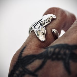 Cuttlefish Textured Whale Tail Ring – Sterling Silver